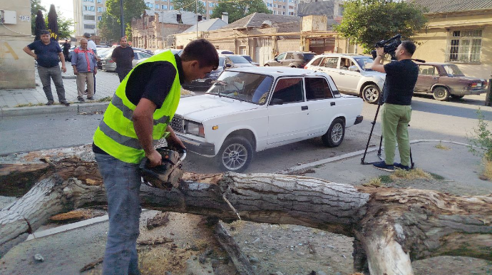 Külək fəsadlar törətdi: Ağac "07"nin üstünə aşdı - FOTO