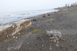 Lənkəranda Xəzər dənizində nəhəng beton bünövrələr üzə çıxıb.