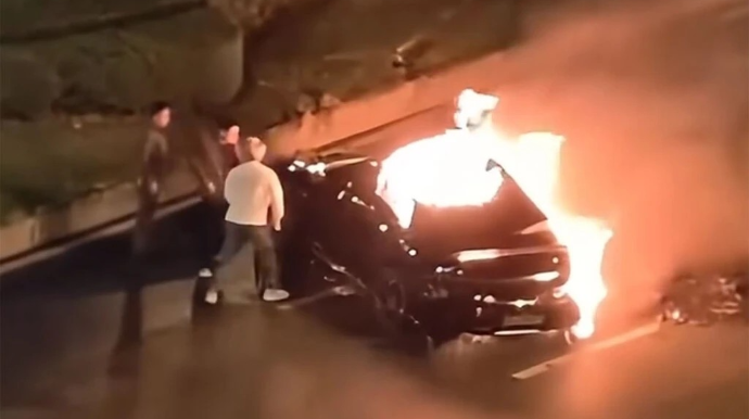 Lüks elektromobil yandı: qapılar açılmadığı üçün sürücü ÖLDÜ - VİDEO