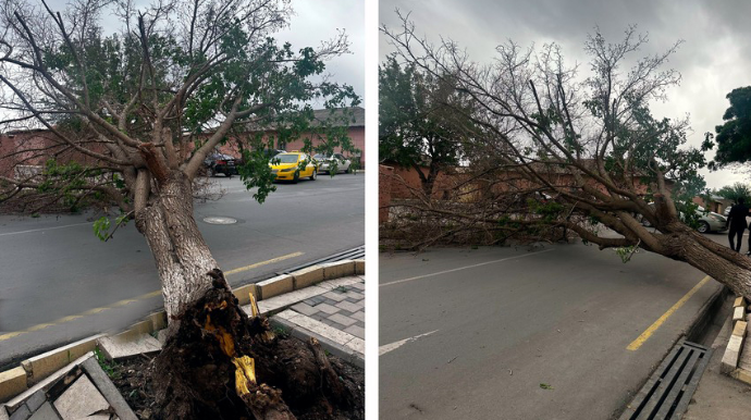 Naxçıvanda külək irigövdəli ağacı yola aşırıb - FOTO