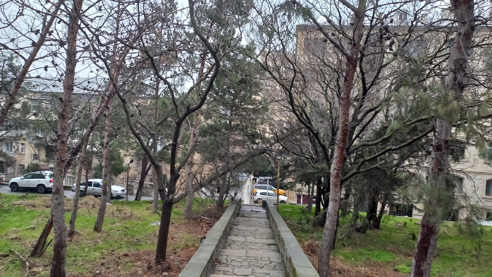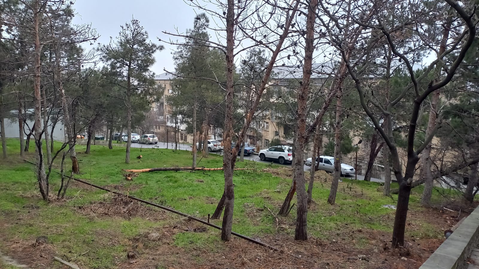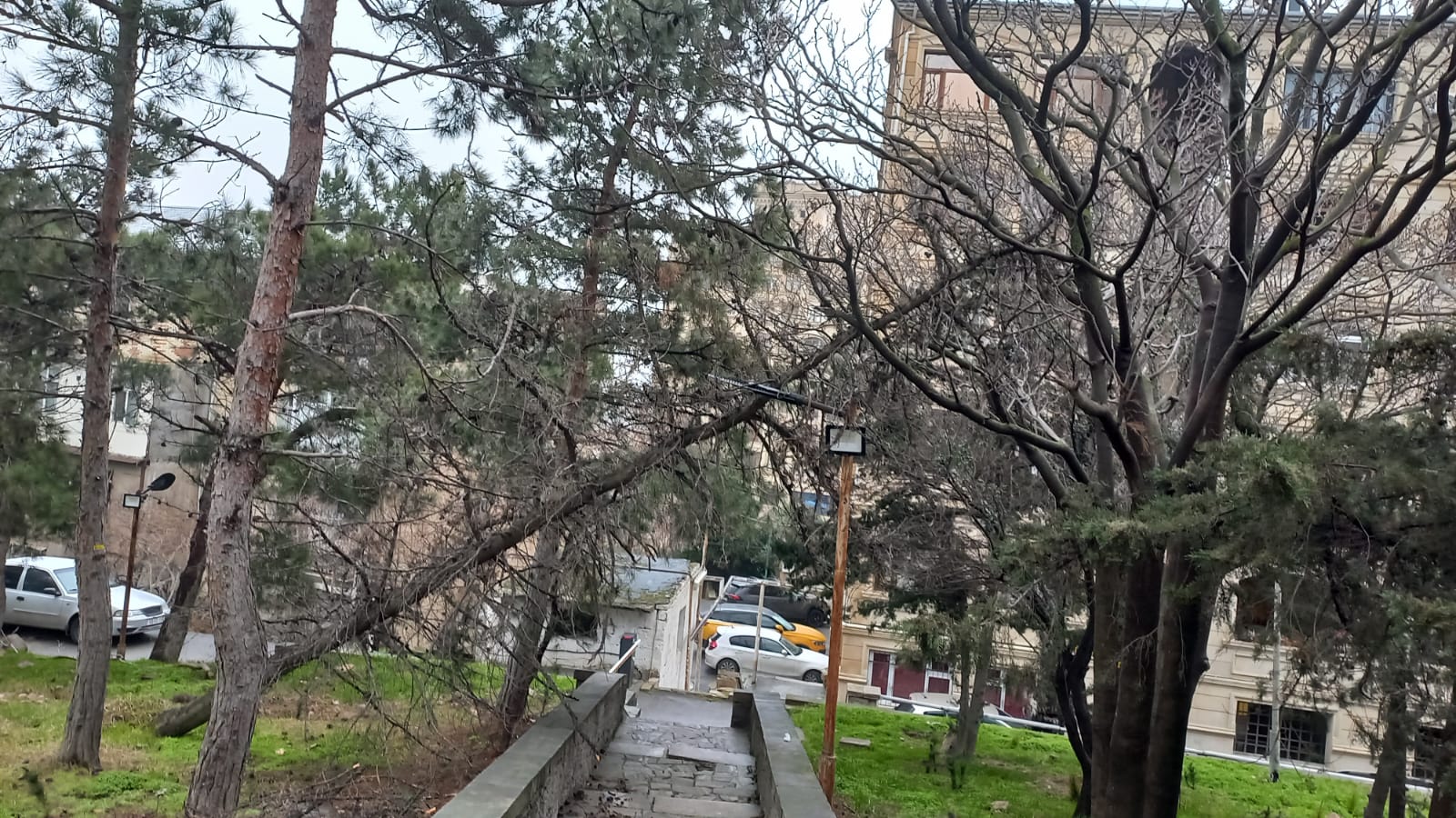 Dekabr ayı ərzində bura yeni şam tingləri əkilsə də, yaşıllaşdırma bütün boş ərazini əhatə etmədi. Təxminən 20 gün əvvəl baş verən güclü külək və yağış isə yaşıllaşdırmaya cavabdeh qurumların yarımçıq işini bütün çılpaqlığı ilə ortaya qoydu. Ərazidəki quru şam və sərv ağaclarından bir neçəsi aşıb. Aşan sərvlərdən biri (ən böyüyü) piyada yolunun üzərinə düşüb. Ağac yolu bağlamasın deyə kimsə piyadalara mane olan budaqları kəsib. Quruyub aşan ağac digərlərinə də təhlükə yaradır.