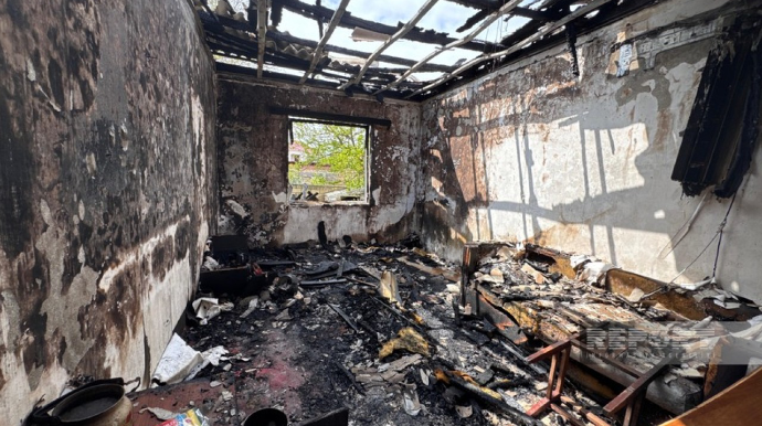 Üç otaqdan ibarət ev tamamilə yanaraq külə dönüb.
