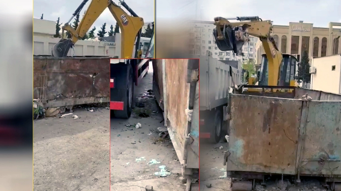 Sumqayıtda zibilin ekskavatorla yığılması etirazla qarşılandı - VİDEO