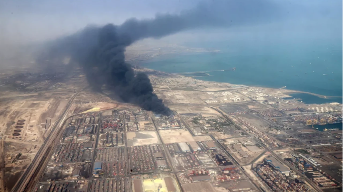 İranın Təbriz şəhərində hava limanı üzərində çoxmetrlik tüstü sütunu qalxıb.