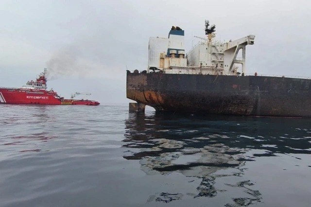 Türkiyə sahillərində yanan gəmi söndürüldü - FOTO
