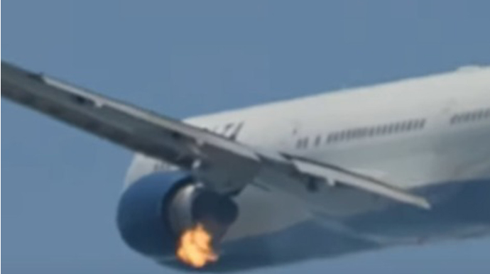 Uçuş zamanı təyyarənin mühərriklərinin birində yanğın olub - VİDEO