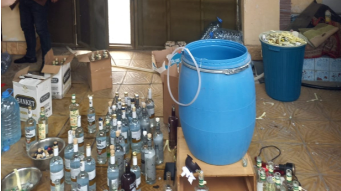 Yaşayış evində saxta alkoqollu içkilərin istehsal edildiyi aşkarlanıb - FOTO