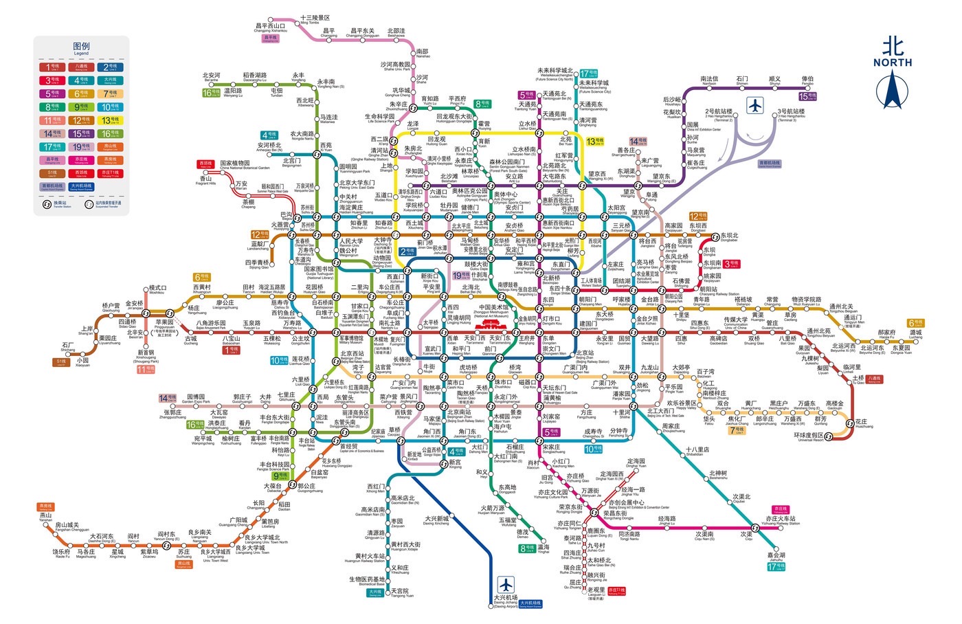 İndi Pekin dünyanın ən böyük metro şəbəkəsinə malik paytaxtıdır. Pekin metropoliteni 29 xətt, 523 stansiyadan (99-u keçid) ibarət olub, yolların ümumi uzunluğu 879 kilometrdir. Tikinti bu gün də fasiləsiz davam edir.