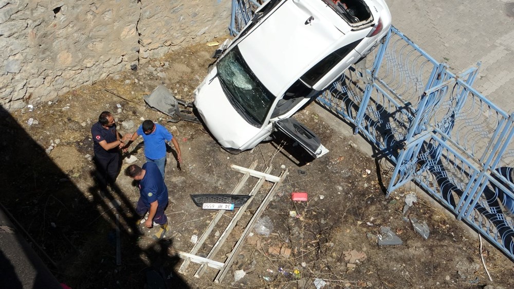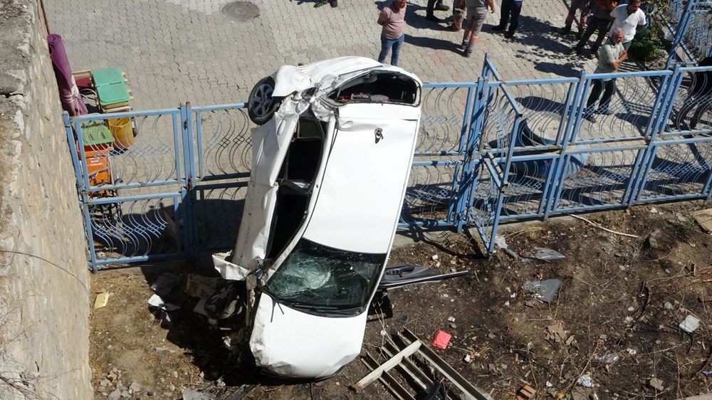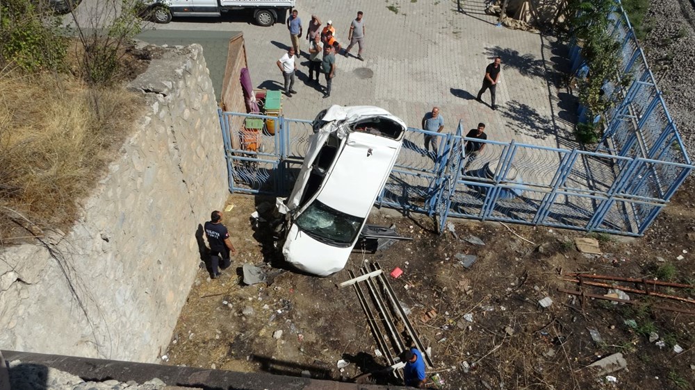 Türkiyənin Malatya şəhərində idarəetməni itirən sürücünün avtomobili körpünün məhəccərlərini qıraraq aşağı uçub. 2 nəfərin yaralandığı qəzada nəqliyayt vasitəsi dik vəziyyətdə qalıb.