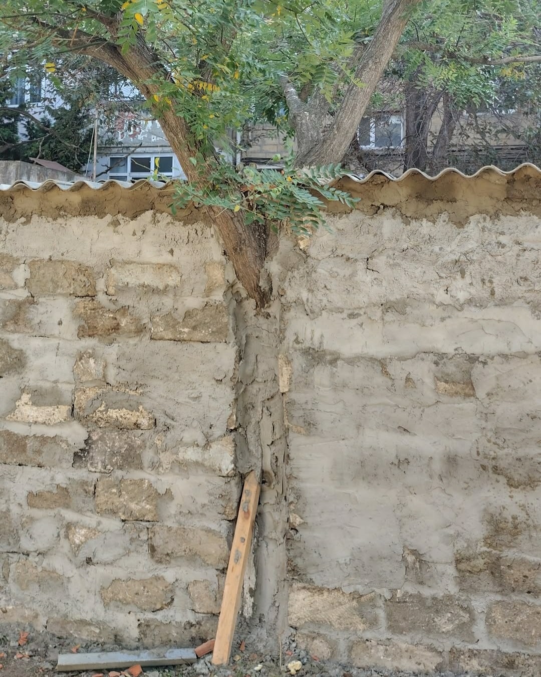Avtosfer.az xəbər verir ki, Nizami rayonunda tikinti işləri aparılarkən bir ağacın divara hörüldüyü məlum olub.