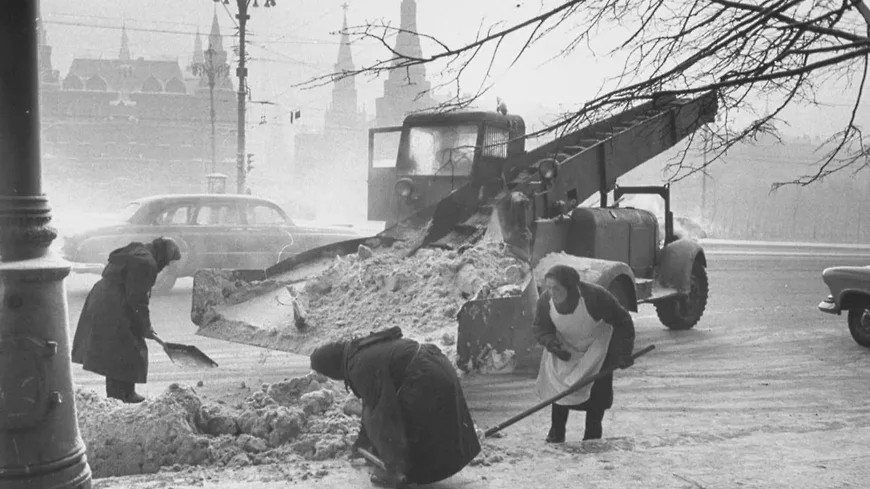 Təqdim etdiyim fotolar 1960-cı ilin yanvarında Moskvada çəkilib. Fotolardan göründüyü kimi texnika olsa da, əsas yük əllərində kürək olan qadınların üzərinə düşür. Yaşlı qadınlar Rusiyanın dondurucu şaxtasında qarı kürüyərək maşınlara yükləyirlər. Kişilər isə kənarda dayanıb komanda verirlər. Tanış mənzərədir?
