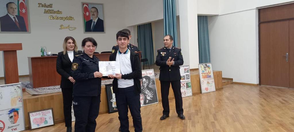 Sonda isə onları maraqlandıran suallar cavablandırılıb, fəallıq göstərən şagirdlərə Polis İdarəsinin rəisi tərəfindən diplomlar təqdim olunub.