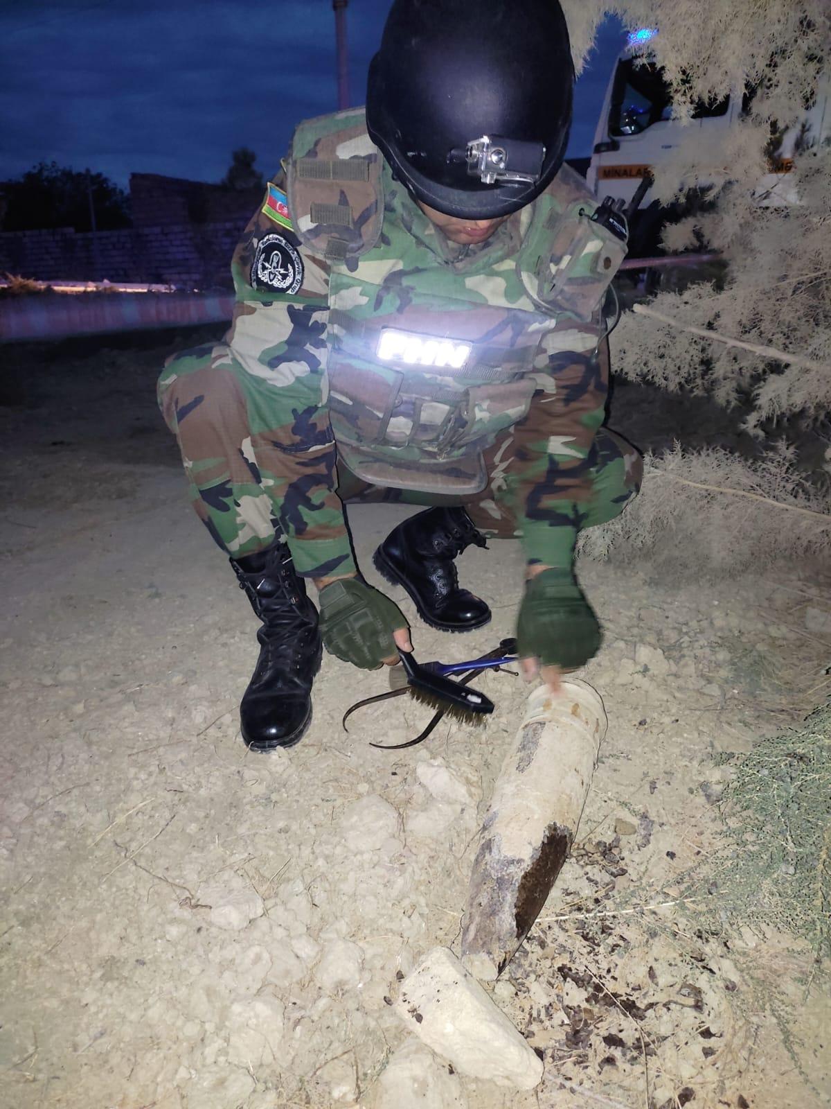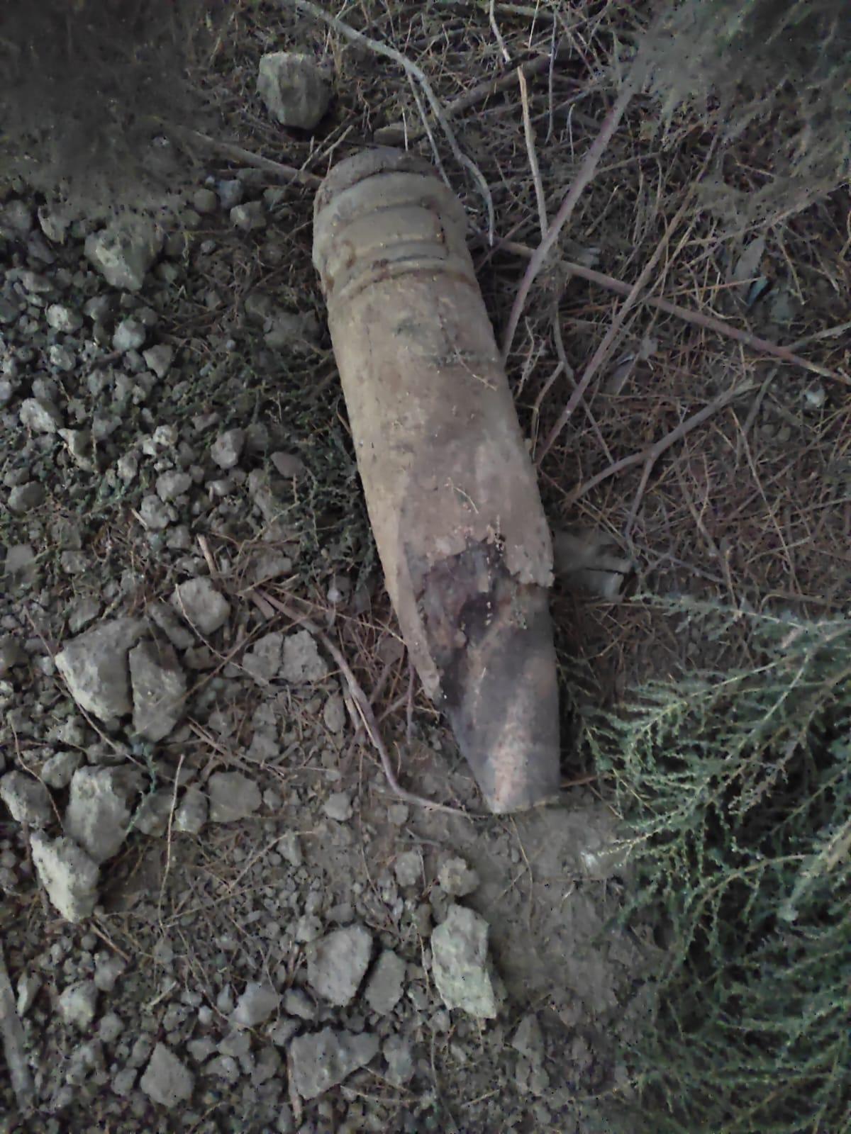 Hüquq-mühafizə orqanlarının əməkdaşları ilə birgə ərazidə müvafiq təhlükəsizlik tədbirləri görüldükdən sonra hadisə yerinə baxış zamanı aşkar edilmiş sursatın 1 ədəd döyüş tətbiqinə yararlı 100 mm-lik top mərmisi olduğu müəyyən edilib.