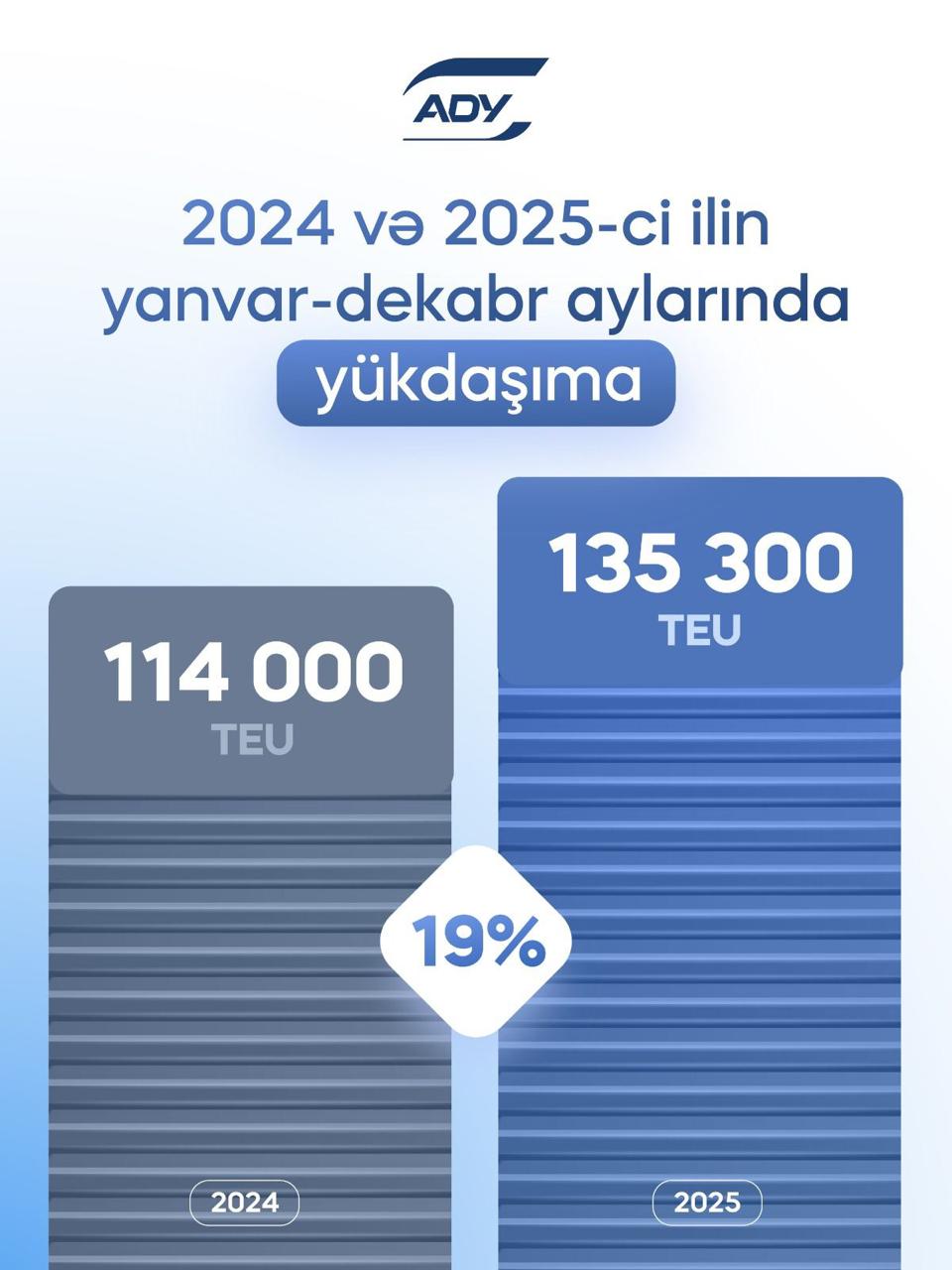 Ötən il ümumilikdə 135 300 TEU konteyner yük daşınıb ki, bu da əvvəlki ilin göstəricisindən (114 000 TEU) təxminən 19 % çoxdur.