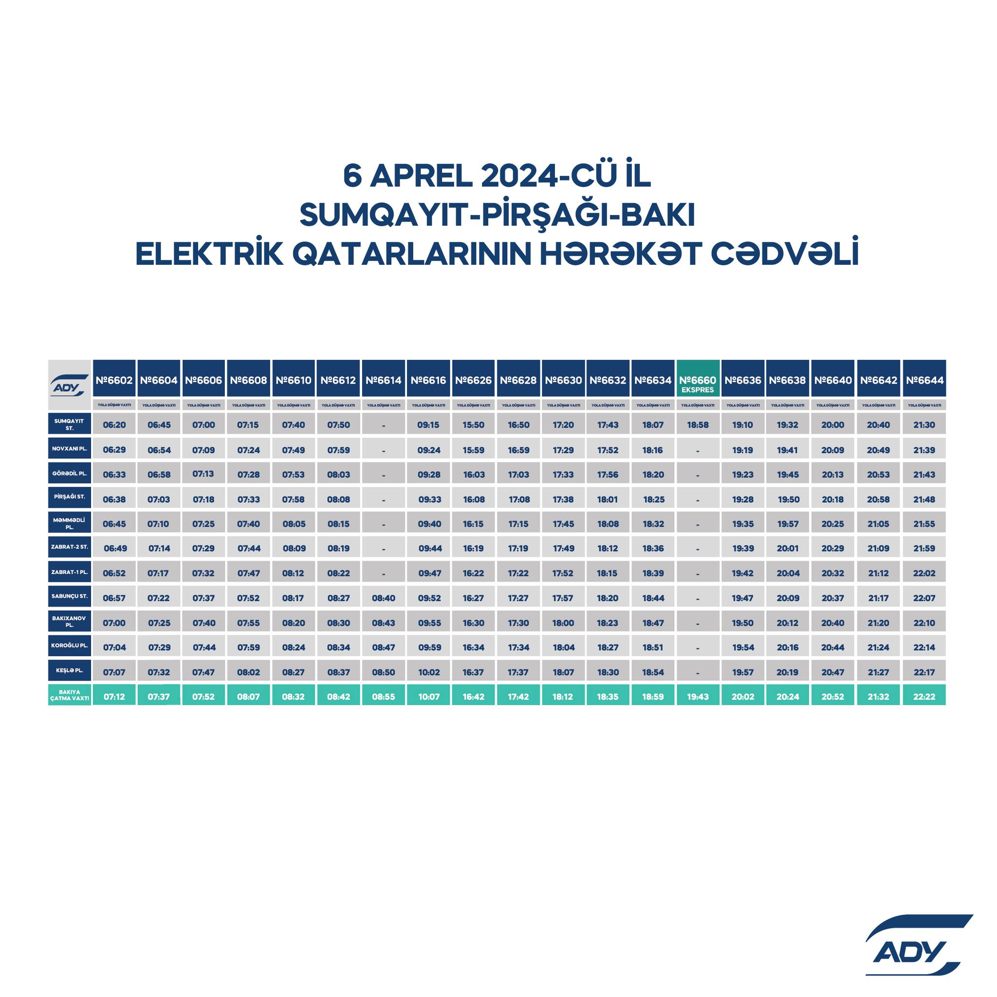 Qeyd edək ki, Bakı–Xırdalan–Sumqayıt–Bakı istiqaməti üzrə, həmçinin günün pik saatlarında Bakı–Pirşağı–Sumqayıt–Bakı istiqamətində qatarların hərəkət qrafiki olduğu kimi qalır.