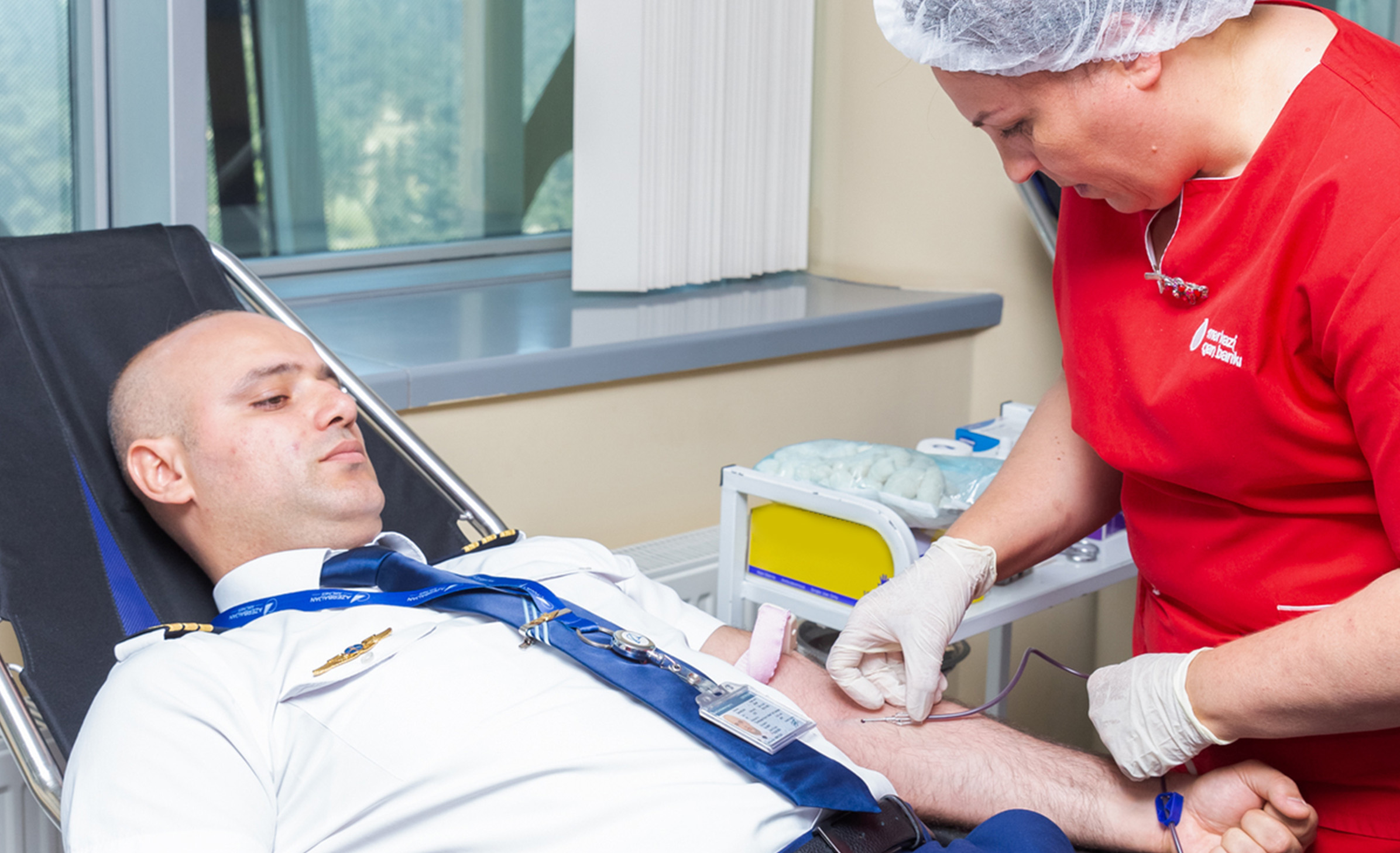 Aksiya Azərbaycan Respublikası Səhiyyə Nazirliyi Milli Hematologiya və Transfuziologiya Mərkəzinin Mərkəzi Qan Bankının dəstəyi ilə Heydər Əliyev Beynəlxalq Aeroportunun ərazisində yerləşən Tibb-Sanitar İdarəsində təşkil olunub.