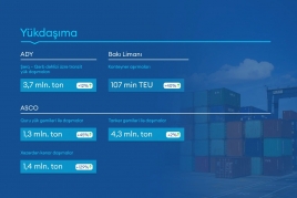 Yükdaşıma üzrə ADY vasitəsilə Şərq-Qərb dəhlizi ilə daşınmış tranzit yüklərin həcmi 3,7 milyon ton olub ki, bu da əvvəlki illə müqayisədə 12 % artım deməkdir. Bakı Limanı vasitəsilə konteyner aşırmalarının həcmi 40 % artım nümayiş etdirərək 107 min TEU təşkil edib.