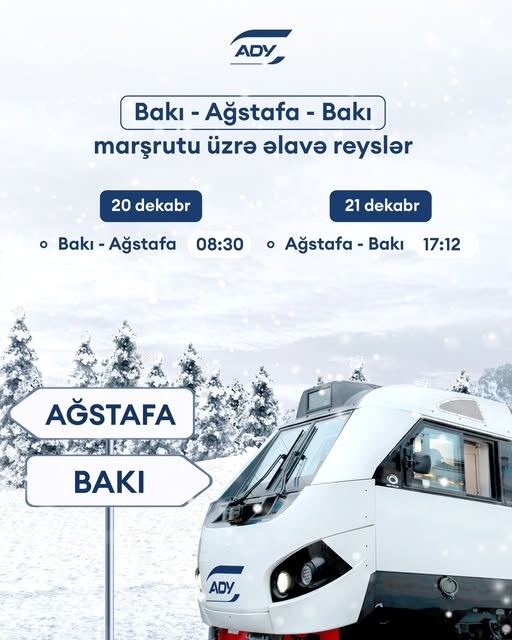 Artan sərnişin tələbatını təmin etmək məqsədilə 20-21 dekabr tarixlərində Bakı-Ağstafa-Bakı istiqamətində əlavə qatar reysləri təyin edilib.