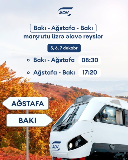 Artan sərnişin tələbatını təmin etmək məqsədilə 5, 6 və 7 dekabr tarixlərində Bakı-Ağstafa-Bakı istiqamətində əlavə qatar reysləri təyin edilir.