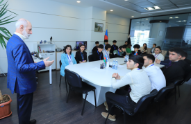 Avtosfer.az xəbər verir ki, tələbələr Xəzər Media Mərkəzinin Baş direktor müşaviri, tanınmış media nümayəndəsi Teymur Məmmədovla görüşdülər, media mərkəzinin iş prinsipləri, fəaliyyət istiqamətləri ilə bağlı fikirlərini dinlədilər. Verilişlərin studiyalarında istifadə olunan işıq, səs və videoçəkiliş avadanlıqlarının növləri ilə tanış olan qonaqlara bu avadanlıqların funksiyaları, onlardan təhlükəsiz istifadə təlimatları barədə ətraflı məlumat verildi. Daha sonra tələbələr Xəzər Media Mərkəzinin “Araz FM” və “Xəzər FM” radiolarını gəzdilər, efir yayımı prosesi ilə əyani şəkildə tanış oldular.
