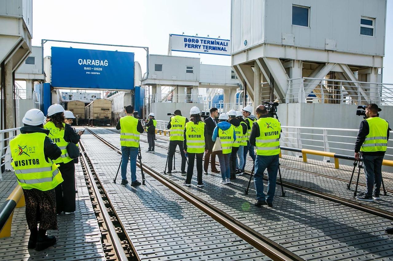 Təlim çərçivəsində jurnalistlər əvvəlcə Bakı Limanının “Əsas yük”, “Ro-ro” və “Bərə” terminallarına səfər edərək ölkəmizdən tranzit keçən yüklərin aşırılması prosesi, əsas daşınma istiqamətləri və növləri, bu prosesdə istifadə edilən texniki avadanlıqlarla bağlı məlumat əldə edib, onları maraqlandıran suallara cavab tapıblar.