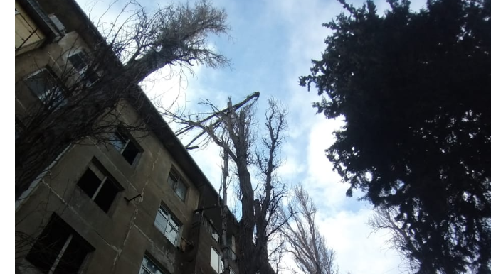 Təhlükəli vəziyyət yaradan qurumuş ağaclar kəsildi - FOTO - YENİLƏNİB