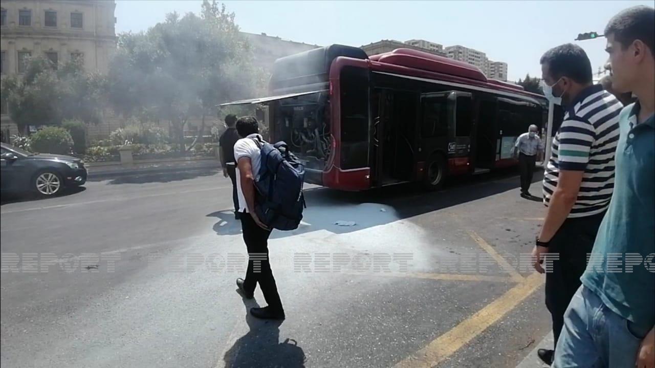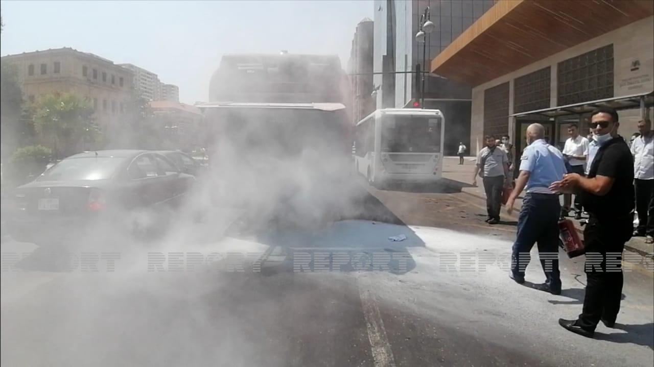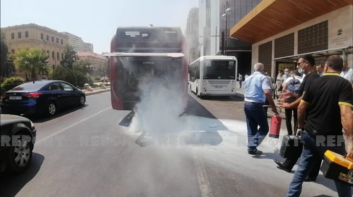 BakuBus avtobusu yandı - ətrafdakılar sürücünün köməyinə yetişib - VİDEO