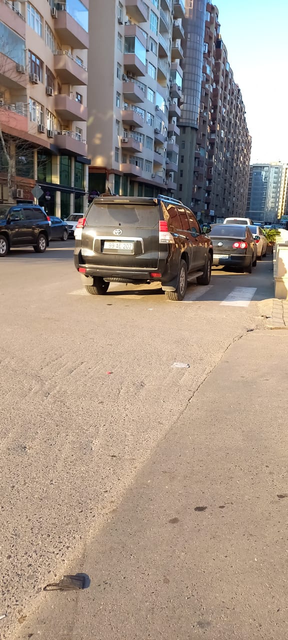 Xətai Estetik Klinikası qarşısındakı piyada keçidi insanların çox axın etdiyi yerdir. Metroya yaxın olduğu üçün təzə binaların çoxunun sakinləri buradan istifadə edir. Amma sürücülər də bu keçidə maşın saxlamaqdan bezmirlər. Bunlardan biri də bu səhər saat 09.00 radələrində rast gəldiyim 99 AE 202 nömrə nişanlı “Land Cruiser”dir. Maraqlı budur ki, təxminən 20-25 irəlidə və geridə boş və qanuni parklama yeri olduğu halda sürücü məhz keçidin üstünü üstün hesab edib. Görünür, avtomobili park edərkən qanunu yox, gedəcəyi yerə maksimum qısa yolu nəzərə alıb.