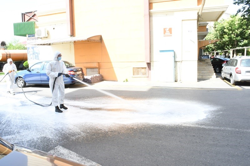 Kommunal xidmətlərinin texnikası əsas küçə və prospektlərin yuyucu maddələrlə yuyulmasını aparıb, əməkdaşlar tərəfindən balansda olan yaşayış binalarında, həyət və yaşayış məhəllələrində, məişət tullantılarının atıldığı konteyner meydançalarının ətrafında əlavə təmizlik işləri görülüb.