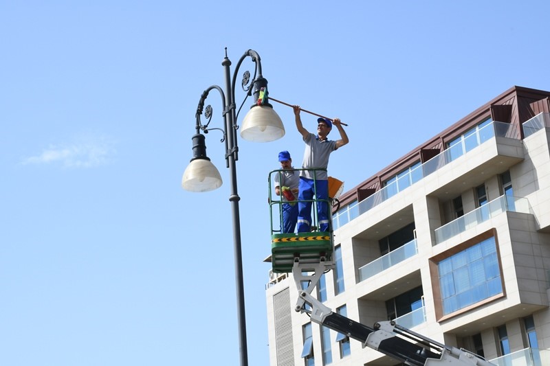 Səhər saatlarından etibarən Bakı Şəhər İcra Hakimiyyətinin kommunal təsərrüfat xidmətlərinin texnikası tərəfindən şəhərin 544 əsas küçə və prospektlərin təbiətə ziyanı olmayan vasitələrlə yuyulmasını təmin edilib və eyni zamanda genişmiqyaslı təmizlik və abadlıq işləri həyata keçirilib.