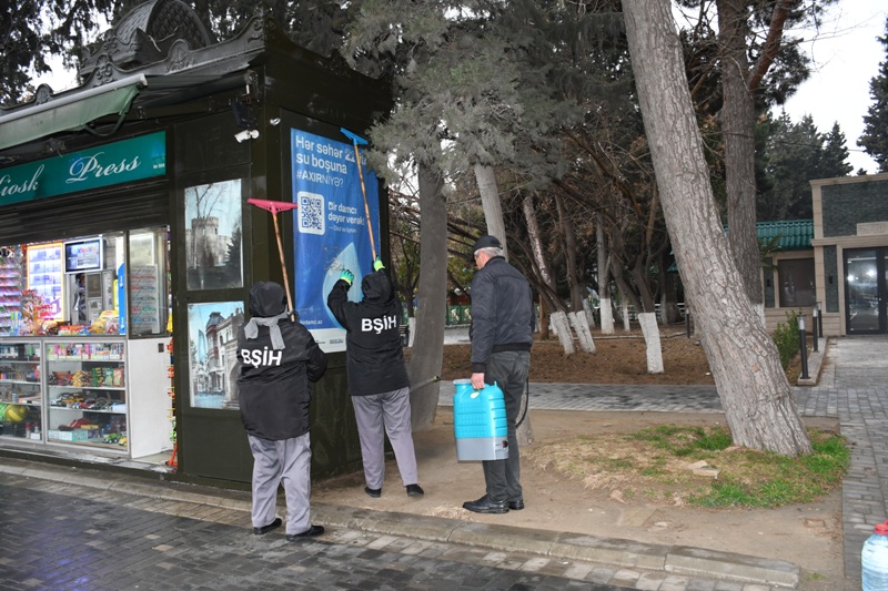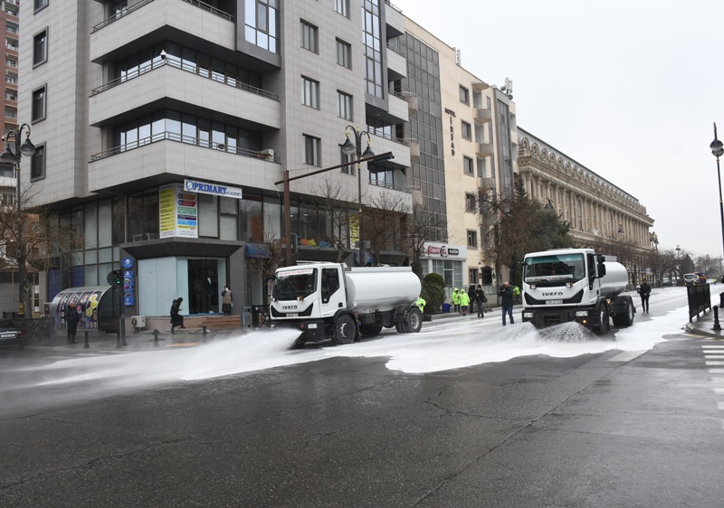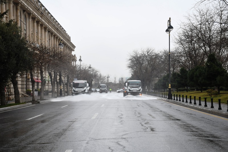 Bakı şəhər kommunal təsərrüfat xidmətlərinin texnikası əsas küçə və prospektlərin bitki və canlılara ziyansız yuyucu maddələrlə yuyulmasını aparıb, əməkdaşlar tərəfindən həyət və yaşayış məhəllələrində, məişət tullantılarının atıldığı konteyner meydançalarının ətrafında əlavə təmizlik işləri görülüb.