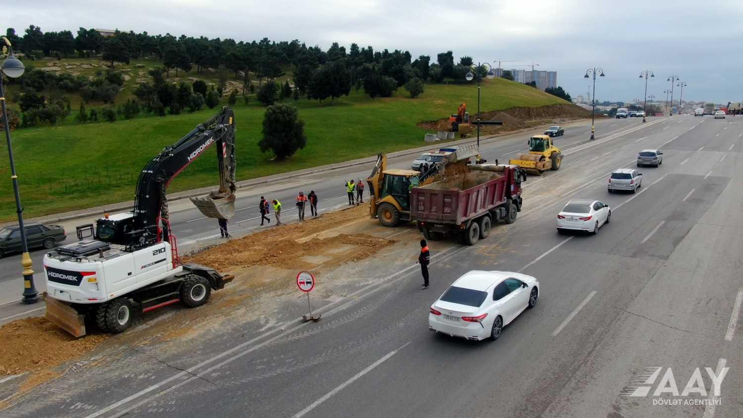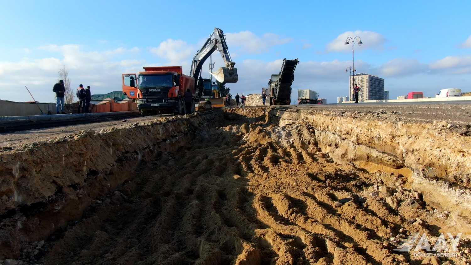 Hazırda ərazidə köhnə asfalt-beton örtüyünün frezlənərək kənara daşınması və zəruri yerlərdə əsasın deformasiyaya uğramış hissələrinin qazılaraq kənarlaşdırılması işləri icra olunur.