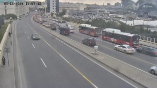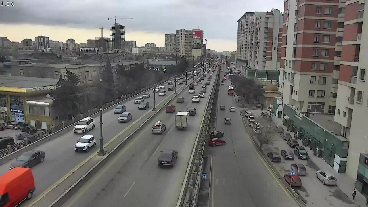 10. Bakıxanov küçəsi, İnşaatçılar prospekti ilə kəsişmədən "Dədə Qorqud" parkı istiqamətində sıxlıq müşahidə olunur.