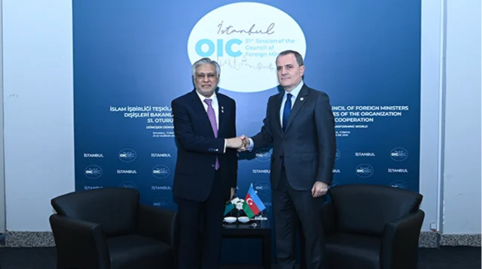 22 iyun 2025-ci il tarixində xarici işlər naziri Ceyhun Bayramov İslam Əməkdaşlıq Təşkilatının Xarici İşlər Nazirləri Şurasının 51-ci sessiyasında iştirakı çərçivəsində Pakistanın Baş nazirinin müavini, xarici işlər naziri Məhəmməd İshaq Dar ilə görüşüb.