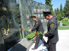 Əvvəlcə Ulu Öndər Heydər Əliyevin abidəsi, eləcə də torpaqlarımızın azadlığı uğrunda canından keçən şəhidlərimizin məzarları ziyarət olunub,  önünə gül dəstələri düzülüb.