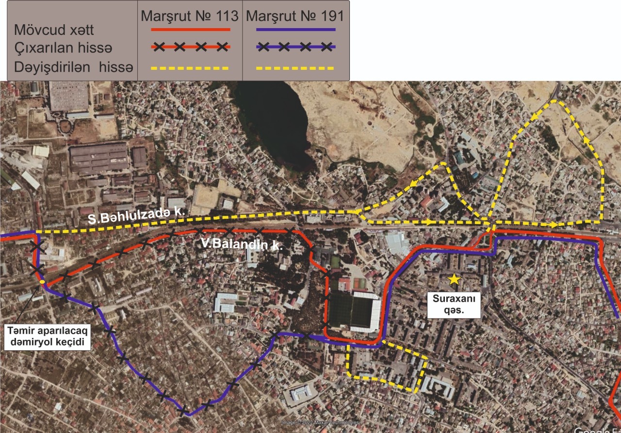 Bu marşurutların hərəkət sxemi müvəqqəti dəyişdiriləcək - FOTO