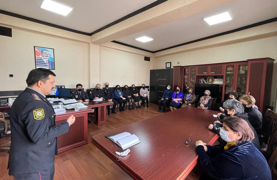 Əvvəlcə tədbir iştirakçıları işğalçılarla qeyri-bərabər döyüşlərdə qəhrəmancasına həlak olan 17 polis əməkdaşının, soyqırıma məruz qalmış  xocalıların, eləcə də ölkəmizin ərazi  bütövlüyü və suverenliyi uğrunda şəhid olmuş həmvətənlərimizin əziz xatirəsini bir dəqiqəlik sükutla yad ediblər.  İdarə rəisi, polis polkovniki Elçin Məmmədli xalqımızın son iki əsr ərzində erməni millətçiləri tərəfindən dəfələrlə soyqırıma məruz qaldığını, 30 il əvvəl Xocalıda növbəti belə faciə ilə üzləşdiyini bildirib. Yalnız ulu öndər Heydər Əliyevin ali hakimiyyətə qayıdışından sonra bu məsələyə prinsipial şəkildə yanaşıldığı, məhz onun qətiyyəti sayəsində soydaşlarımıza qarşı qəddarcasına törədilən dəhşətli qətliama obyektiv hüquqi-siyasi qiymət verildiyi vurğulanıb.  Ölkə Prezidenti cənab İlham Əliyevin tapşırığı ilə bu faciənin bütün dünyada tanınması istiqamətində görülən işlər, eyni zamanda, Heydər Əliyev Fondunun vitse-prezidenti Leyla Əliyevanın təşəbbüsü ilə başladılan "Xocalıya ədalət!" kampaniyası çərçivəsində mütəmadi şəkildə həyata keçirilən tədbirlər nəticəsində erməni millətçilərinin, lobbisinin və havadarlarının bu istiqamətdəki səylərinin puç olduğu, yalan və saxtakarlıq üzərində qurulmuş təbliğatlarının iflasa uğradığı qeyd olunub.  O, Azərbaycan Respublikasının daxili işlər naziri, general-polkovnik Vilayət Eyvazovun adından qəhrəman şəhərin müdafiəsində şəhid olmuş polis əməkdaşlarının ailə üzvlərinə bir daha başsağlığı verib, onların problemləri və qayğıları ilə maraqlanıb, qaldırılan məsələlərin tezliklə həlli istiqamətində müvafiq tədbirlərin görüləcəyini bildirib.Tədbirdə iştirak edən şəhid ailələri onlara göstərilən diqqətə, qayğıya, həmçinin əvvəlki görüşlərdə qaldırılan bir çox problemlərin həllinə görə ölkə və DİN rəhbərliyinə minnətdarlıqlarını ifadə ediblər.