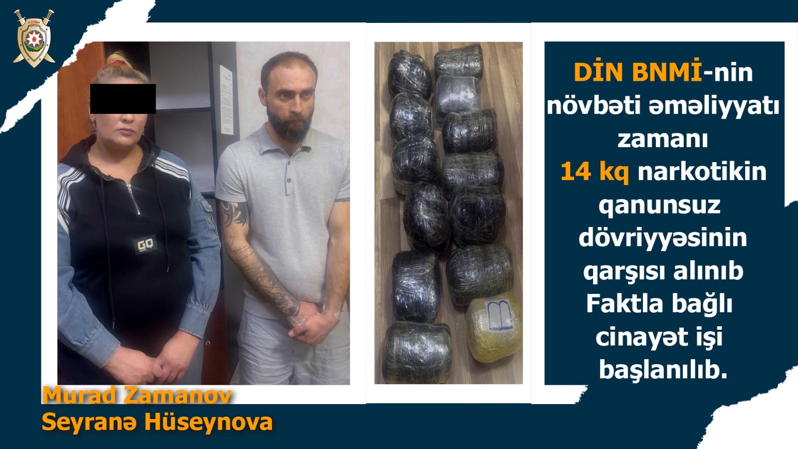Avtosfer.az xəbər verir ki, Qaradağ rayonunda keçirilən növbəti əməliyyat zamanı 31 yaşlı Murad Zamanov və tanışı 46 yaşlı Seyranə Hüseynova saxlanılıblar. M.Zamanovun idarə etdiyi avtomobilə baxış zamanı 14 kiloqram tərkibinə zərərli maddələr əlavə edilmiş marixuana aşkarlanıb.