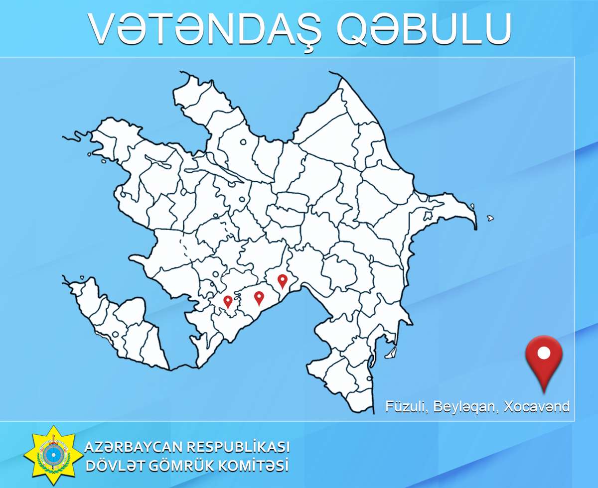 Qəbul zamanı Füzuli, Beyləqan və Xocavənd rayonları sakinlərinin gömrük məsələləri ilə bağlı müraciətləri dinləniləcək.