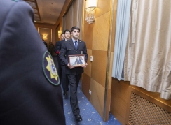 Mərasimin əvvəlində şəhid gömrükçü Ülvi Hacıyevin fotosu salona gətirilib, daha sonra zala daxil olan Vətən müharibəsi iştirakçıları alqışlarla qarşılanıb.