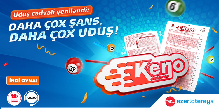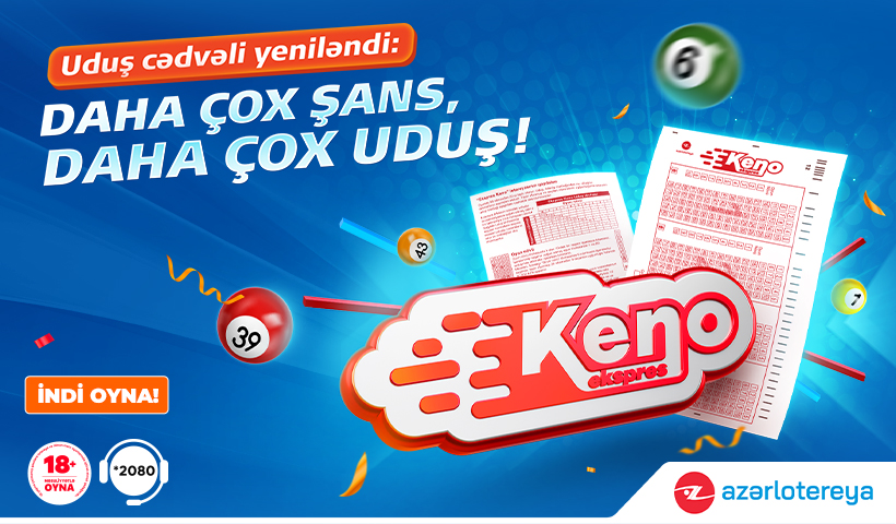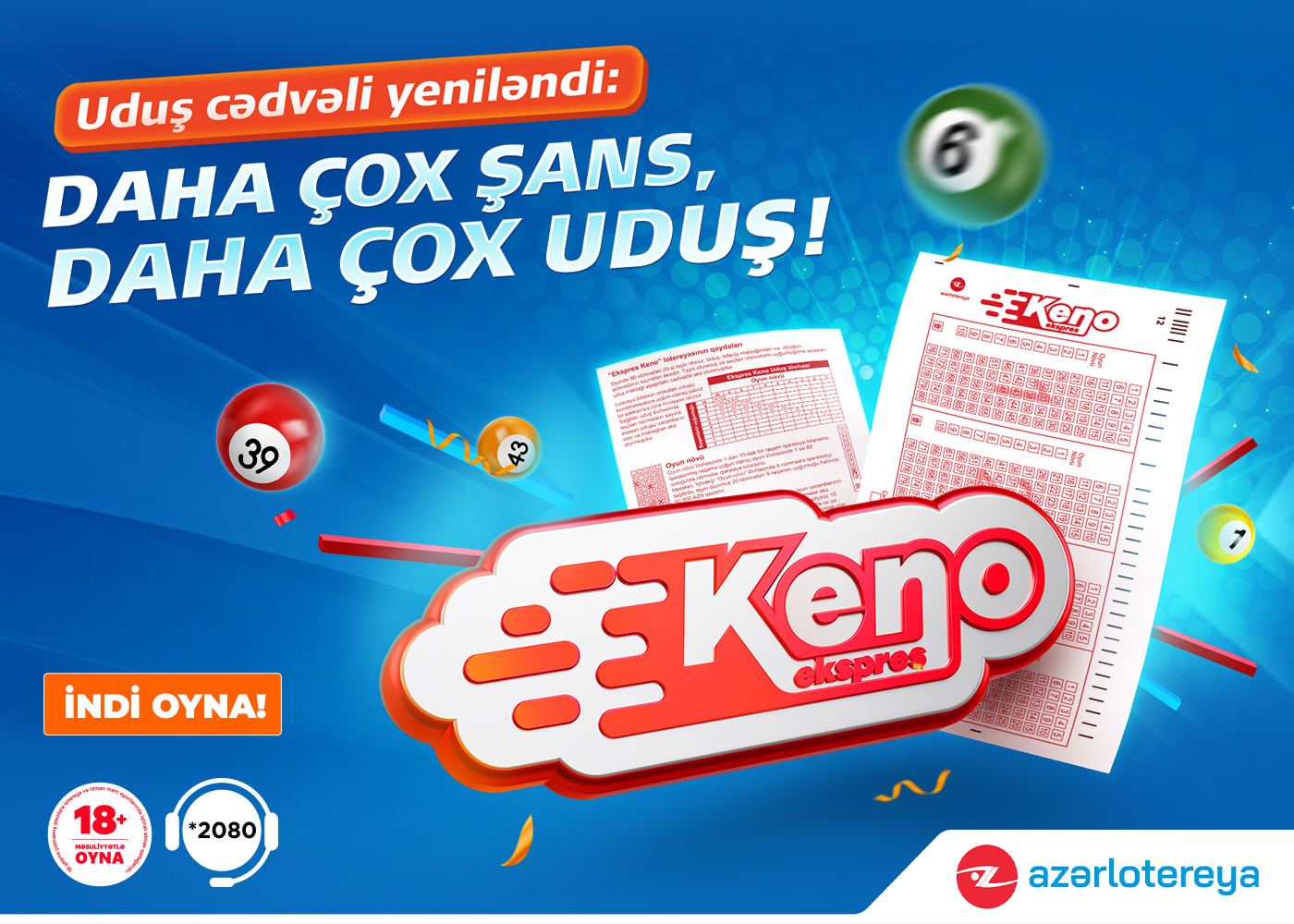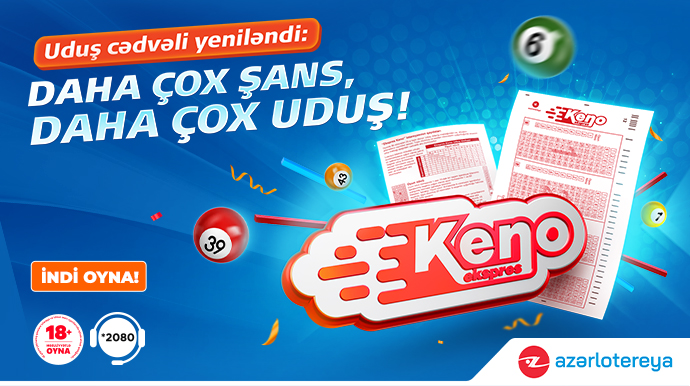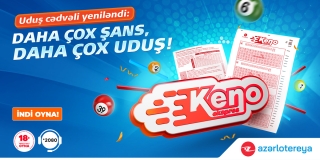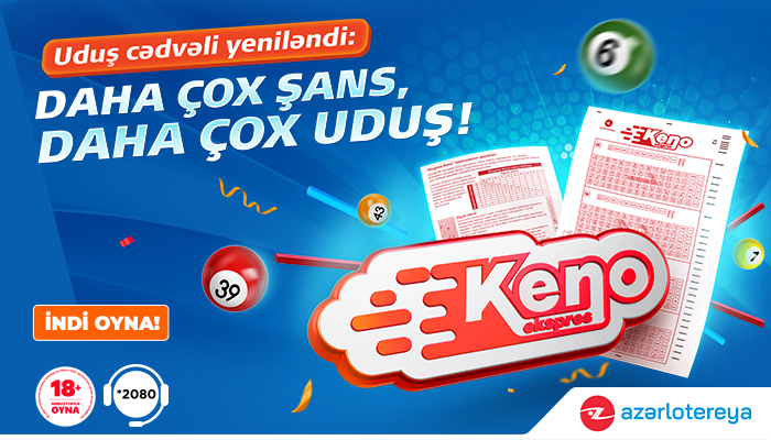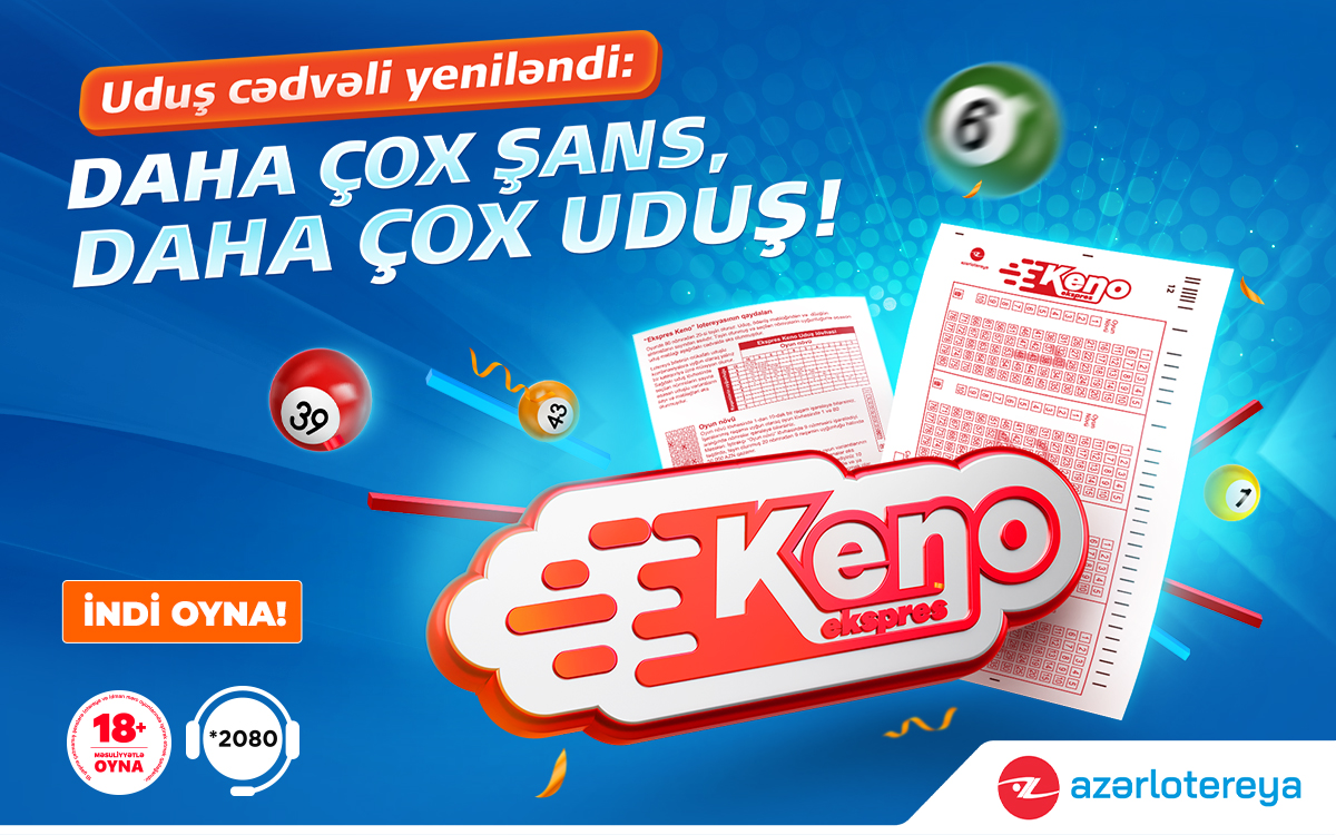 Ölkənin qanuni və yeganə lotereya təşkilatçısı “Azərlotereya” ASC şans oyunları həvəskarlarını sevindirməyə davam edir. İndi “Ekspress Keno” oyununda daha çox şans, daha çox uduş imkanı var.