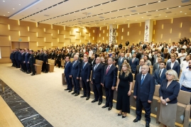 Tədbirdə Nərimanov rayon İcra Hakimiyyətinin başçısı Elgin Həbibullayev, Milli Məclisin deputatları və digər natiqlər çıxış edərək bildiriblər ki, dövlət suverenliyimizin tam bərpası cənab Prezidentin dəmir siyasi iradəsinin və qətiyyətli liderliyinin nəticəsidir. Onlar, beynəlxalq hüququn və beynəlxalq təşkilatların böhranının müşahidə edildiyi bir dövrdə, ölkəmizə tarixi zəfərlərə imza atmış və artıq adını Azərbaycan tarixinə əbədi həkk etmiş Müzəffər Ali Baş Komandan kimi güclü bir şəxsiyyətin və dahi siyasətçinin rəhbərlik etməsi xalqımız üçün böyük xoşbəxtlik və sonsuz qürur olduğunu vurğulayıblar.
