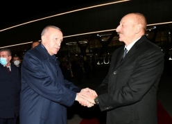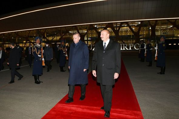 Türkiyə Prezidenti Rəcəb Tayyib Ərdoğanı hava limanında Azərbaycan Prezidenti İlham Əliyev yola salıb.
