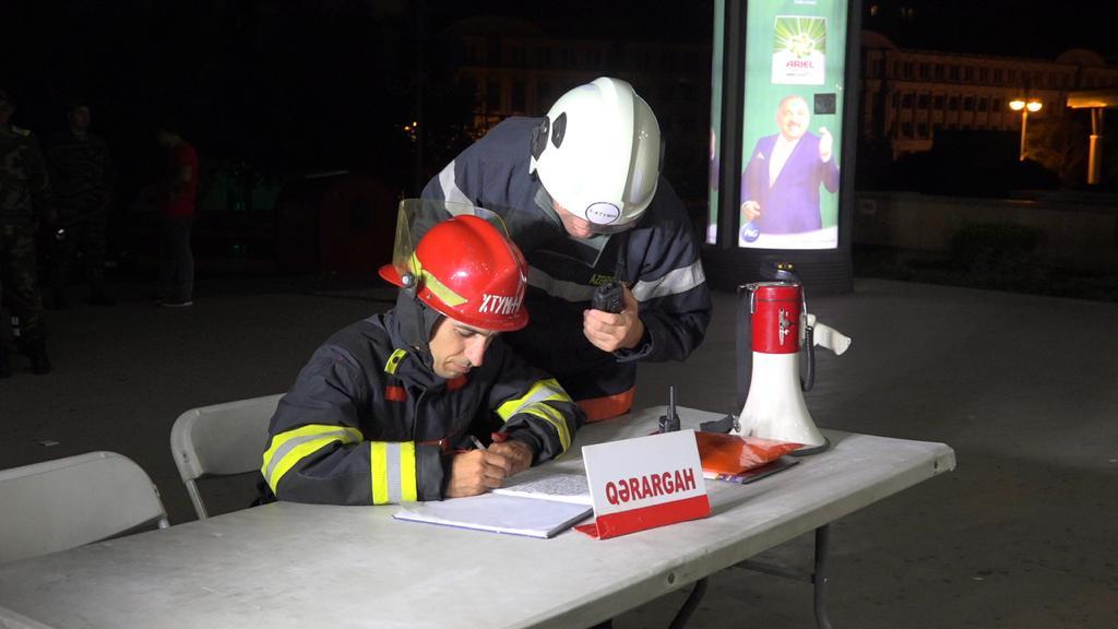 FHN-in mobil yanğın-xilasetmə qrupları tərəfindən fərdi mühafizə vasitələrindən istifadə edilməklə operativ olaraq kəşfiyyat və əməliyyat şəraitinin qiymətləndirilməsi işləri aparılıb, qısa müddətdə şərti yanğın söndürülüb, xilasetmə vasitələri tətbiq edilməklə “zərərçəkmişlər” təxliyə olunaraq onlara “ilkin yardım göstərilib”.