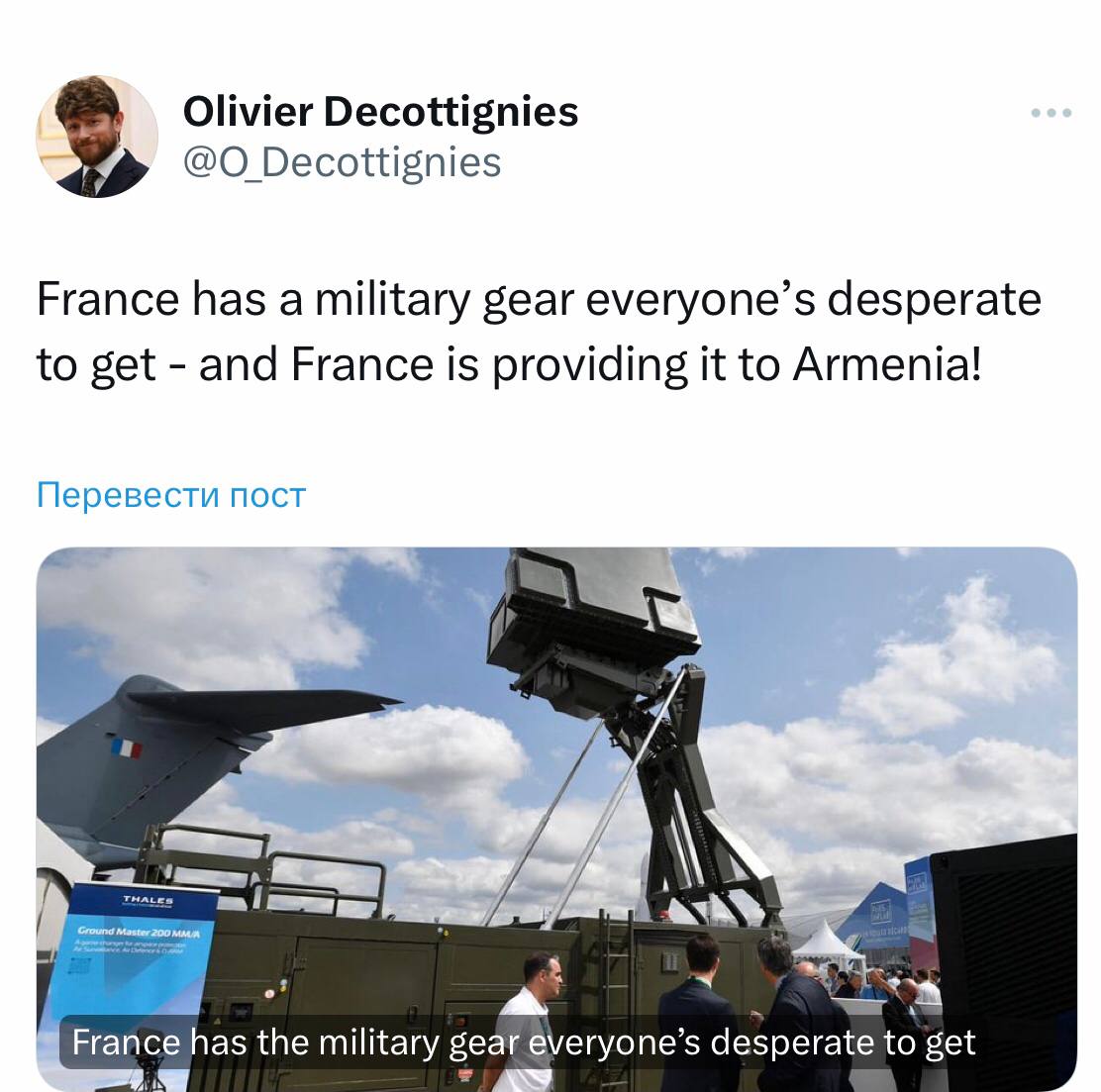 “Fransa bir çox ölkənin arzusunda olduğu hərbi texnikanı Ermənistana verib”.
