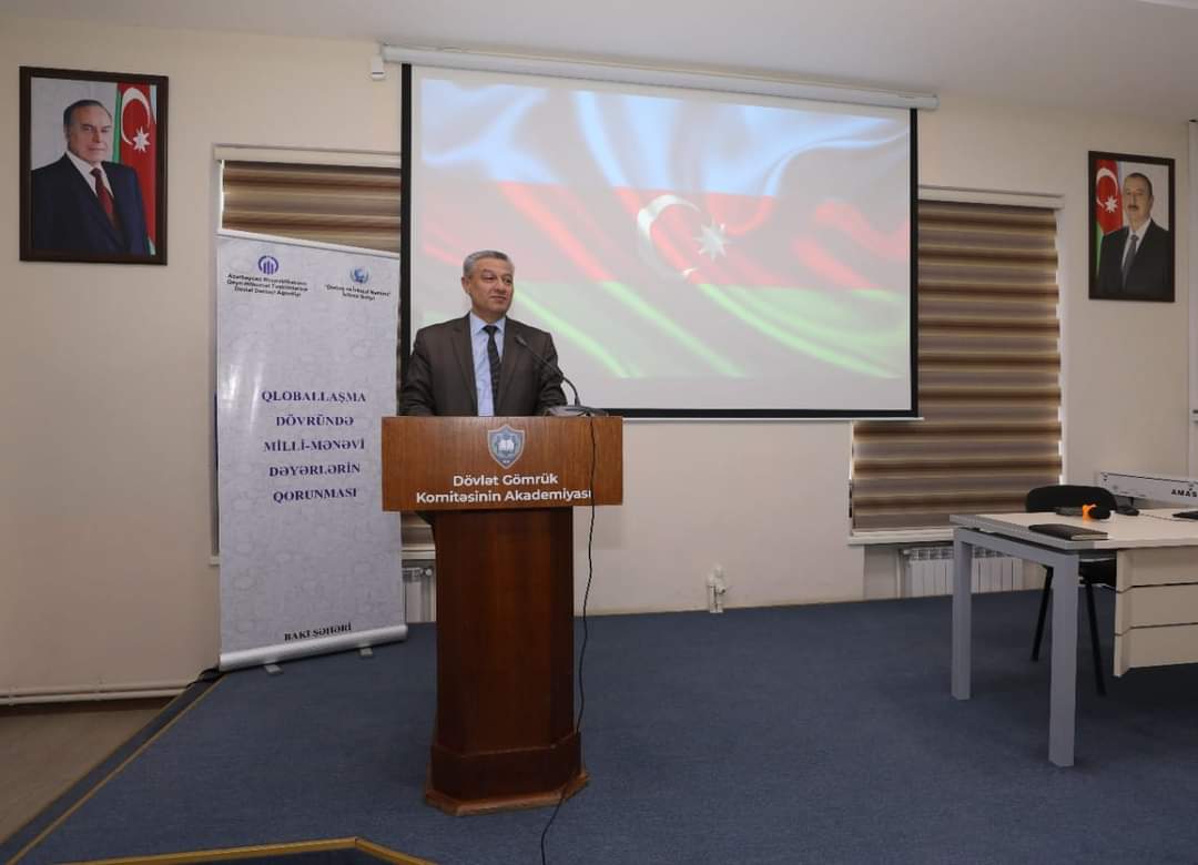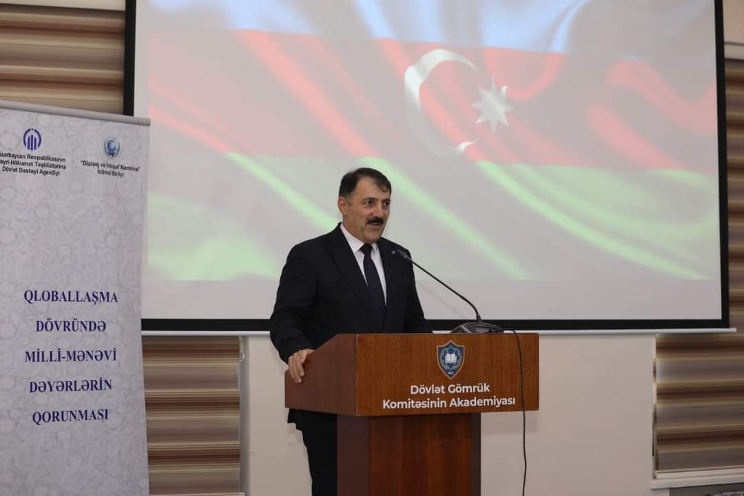 Dövlət Gömrük Komitəsinin Akademiyasında Azərbaycan Respublikasının Qeyri-Hökumət Təşkilatlarına Dövlət Dəstəyi Agentliyinin maliyyə yardımı ilə "Dialoq və İnkişaf Naminə" İctimai Birliyinin (DİNİB) "Qloballaşma dövründə milli-mənəvi dəyərlərin qorunması" adlı layihəsi çərçivəsində tədbir keçirilib.