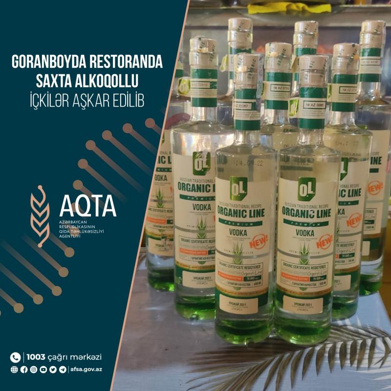 Yoxlama zamanı restorana gələn müştərilərin istifadəsi üçün nəzərdə tutulmuş aşkar saxtalaşdırma əlamətləri olan 4 ədəd 1 litrlik, 3 ədəd 0.7 litrlik və 2 ədəd 0.5 litrlik “Organic Line” əmtəə nişanlı, 2 ədəd 1 litrlik, 8 ədəd 0.7 litrlik və 4 ədəd 0.5 litrlik “Banketnaya Yubiley 10” əmtəə nişanlı və 2 ədəd 1 litrlik, 3 ədəd 0.7 litrlik “Хортиця” əmtəə nişanlı alkoqollu içki aşkar edilib. Malların orjinaldan kəskin fərqləndiyi, o cümlədən qanunsuz olaraq təkrar spirtli içkilərin butulkalarından istifadə edildiyi və digər hissələrin kustar üsulla hazırlanaraq bərkidildiyi müəyyən olunub.