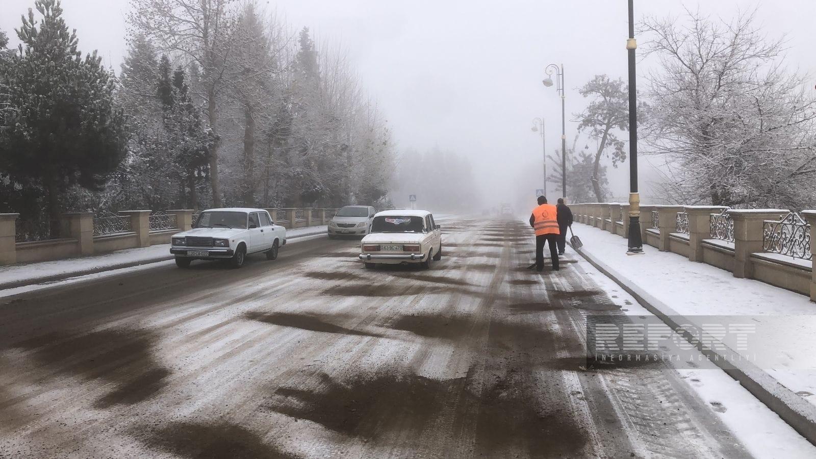 Qum və duzdan istifadə olunmaql bütün yollar və piyada səkiləri buzdan operativ şəkildə təmizlənir.