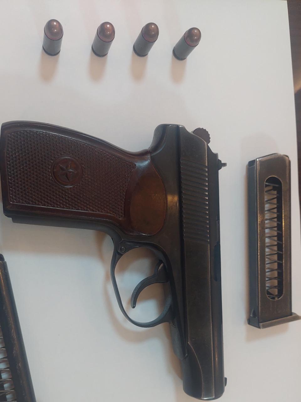 Bundan başqa Rayon Polis Şöbəsinə rayon ərazisindəki “Ərəbli” su arxının yaxınlığında odlu silah olması barədə məlumat daxil olub. Dərhal polis əməkdaşları hadisə yerinə gələrək müvafiq tədbirlər həyata keçiriblər. Araşdırmalar zamanı oradan 2 ədəd “Makarov” tipli tapança, həmin tapançalara aid 1 ədəd sandıqca” 1 ədəd “PSM” markalı tapança və 9 ədəd patron aşkar edilərək götürülüb.