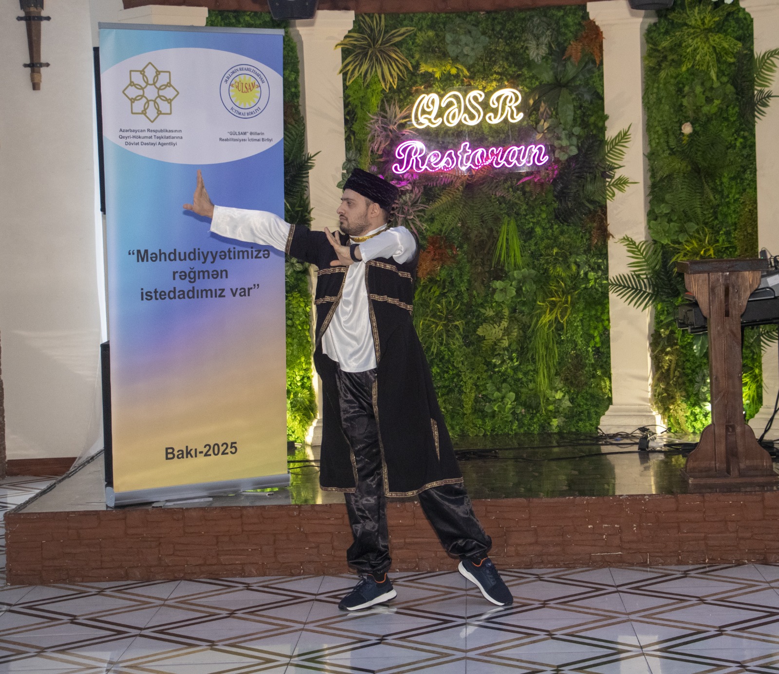 Avtosfer.az xəbər verir ki, “GÜLSAM” ƏRİB Azərbaycan Respublikasının Qeyri-Hökumət Təşkilatlarına Dövlət Dəstəyi Agentliyinin maliyyə dəstəyi ilə “Əlilliyi olan şəxslərin reabilitasiyasının dəstəklənməsi” “Məhdudiyyətimizə rəğmən istedadımız var” adlı layihəni həyata keçirməkdə davam edir. Layihənin ikinci tədbiri Bakı şəhərinin gözəl məkanlarından birində, 26.07.2025-ci il tarixində baş tutub. Tədbirdə 9 nəfər əlil iştirakçı öz bacarıqlarını nümayiş etdirib. Tədbir iştirakçıları arasında musiqiçilər və şairlər yer alıb. Gözəl rəqs edən iştirakçılar da müsabiqədə iştirak etdilər.”GÜLSAM” İctimai Birliyinin rəhbəri Gülnarə Səlimova tədbirə qatılanlara təşəkkür edərək, belə müsabiqələrin cəmiyyətin müxtəlif təbəqələri arasında bərabər imkanlar yaratmaq və əlillərin sosial həyatda iştirakını dəstəkləmək baxımından önəmini vurğuladı.İkinci mərhələdə iştirakçılardan üç nəfər finala vəsiqə qazandı.